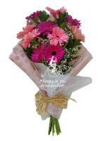 - Envoltura Elegante: Las gerberas están envueltas con papel seda, que realza su belleza natural y añade un toque de frescura al ramo.